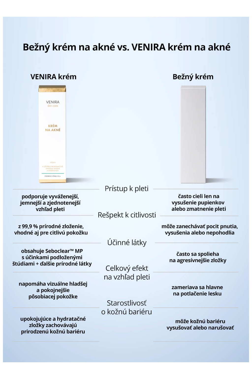 Na komplexnú starostlivosť o pleť so sklonom k pupienkom odporúčame krém kombinovať s čistiacim gélom a lokálnym sérom z rovnakého radu. Ako prvý krok použi čistiaci gél na akné, ktorý jemne a pritom účinne odstraňuje nečistoty a prebytočný maz bez toho, aby narušoval prirodzenú rovnováhu pleti. Potom môžeš aplikovať lokálne sérum, ktoré sa zameriava na cielenú podporu práve tam, kde to pleť najviac potrebuje. Nakoniec nanes náš krém pre vyváženejší a zjednotenejší vzhľad pleti.