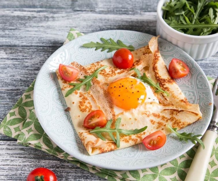 Luxusné slané proteínové lievance so šunkou, vajcom a žervé