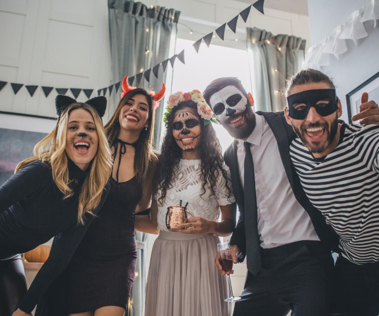 Neboj sa kostýmov. Nemusíš nutne vyhádzať pol šatníka – stačí čierne oblečenie, výrazný make-up a doplnok, ktorý posunie celý outfit na ďalší level (mačacie ušká, krídla, umelá krv…). Pointa je v tom, že čím viac sa uvoľníš a pokojne to preženieš, tým lepší vibe vznikne. Obleč sa napríklad ako: