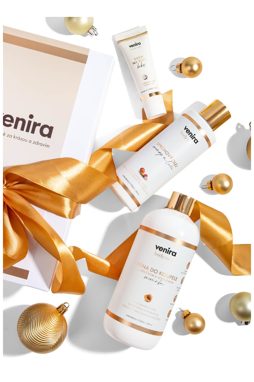 VENIRA darčeková sada pre starostlivosť o telo i myseľ sprchový olej, krém na ruky, pena do kúpeľa