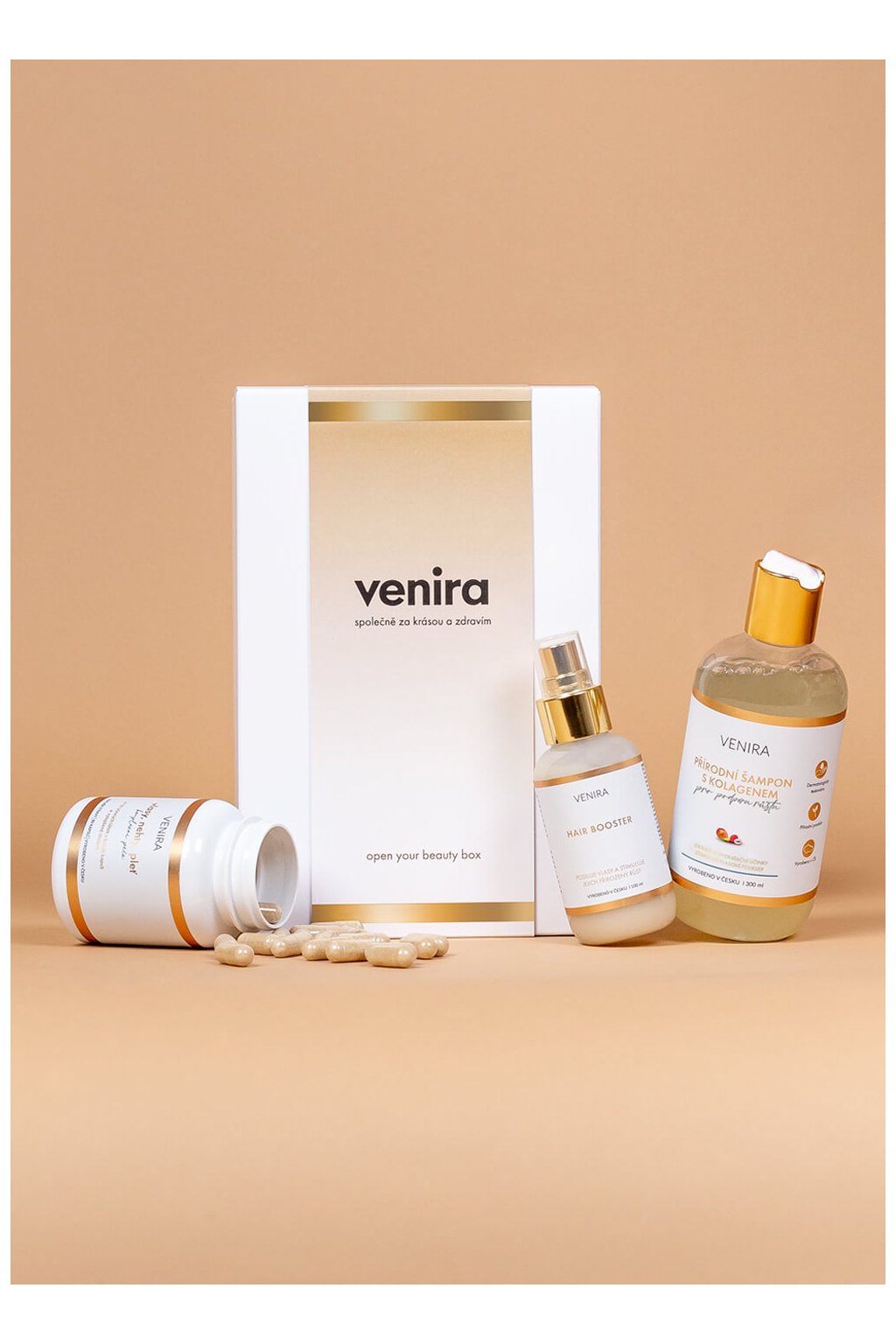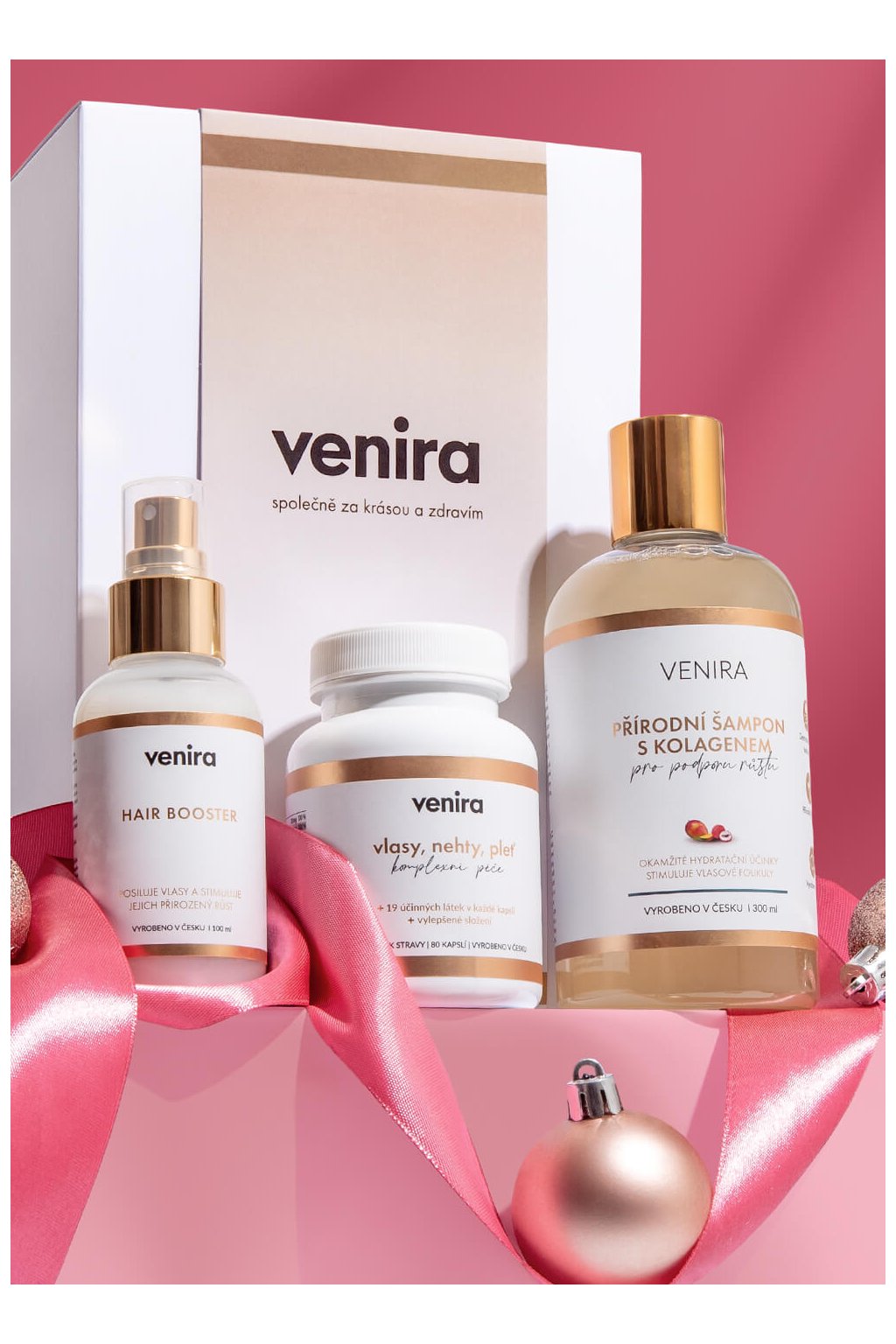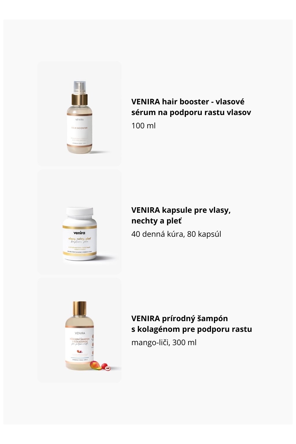 VENIRA darčeková sada podpora rastu vlasov hair booster, kapsule pre vlasy, šampón s kolagénom na podporu rastu