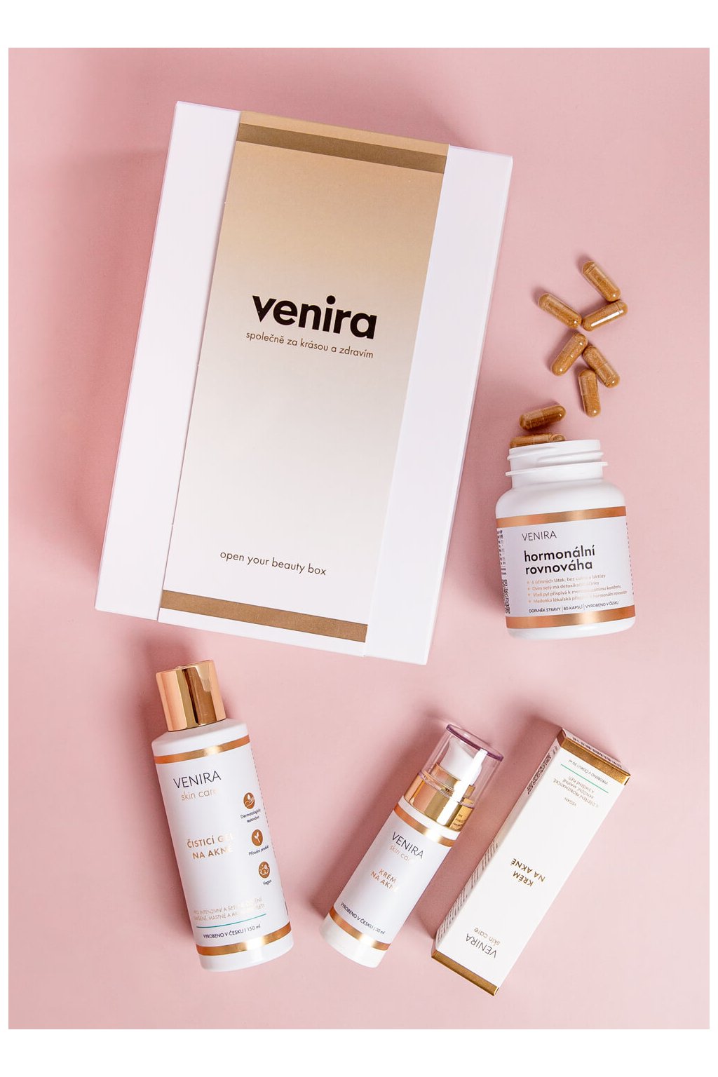 VENIRA darčeková sada vnútornej harmónie a krásna pleť hormonálna rovnováha, krém na akné, čistiaci gél na akné