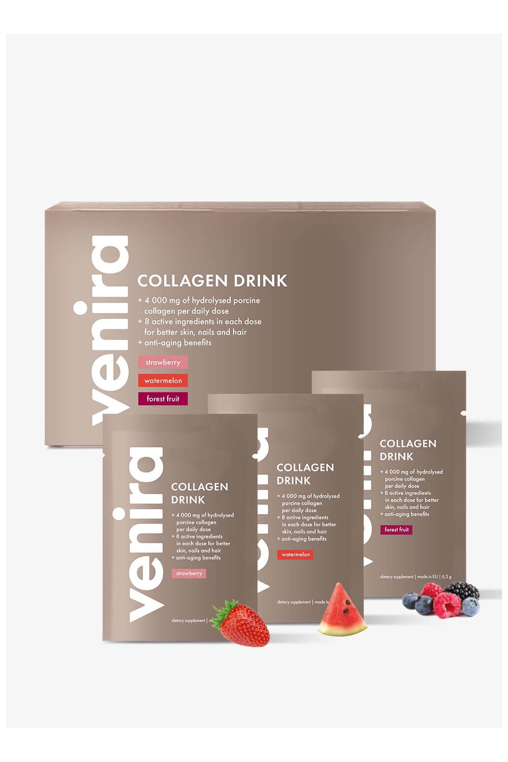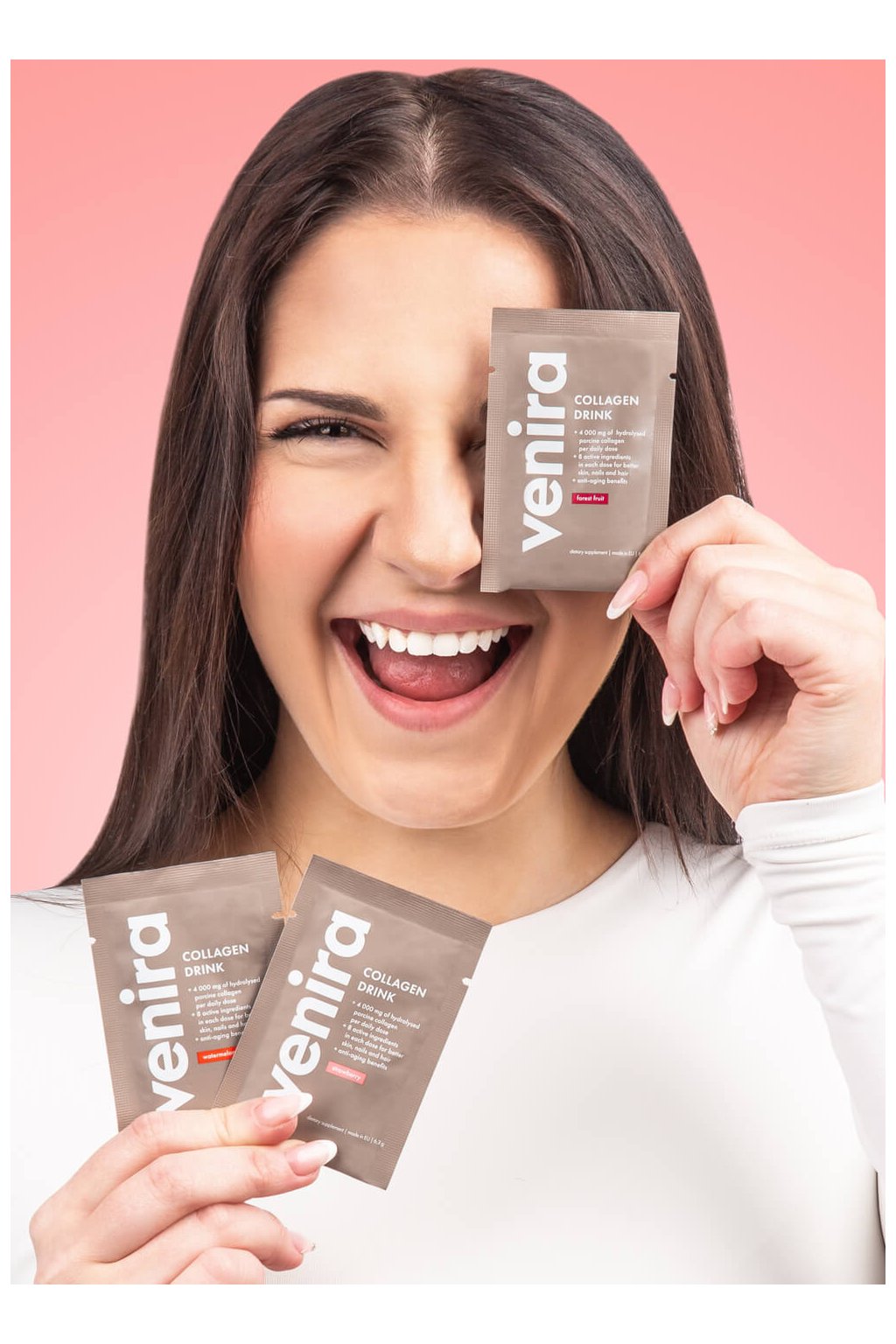 VENIRA kolagénový drink pre vlasy, nechty a pleť mix 3 príchutí, bravčový kolagén, 30 vrecúšok, 189 g