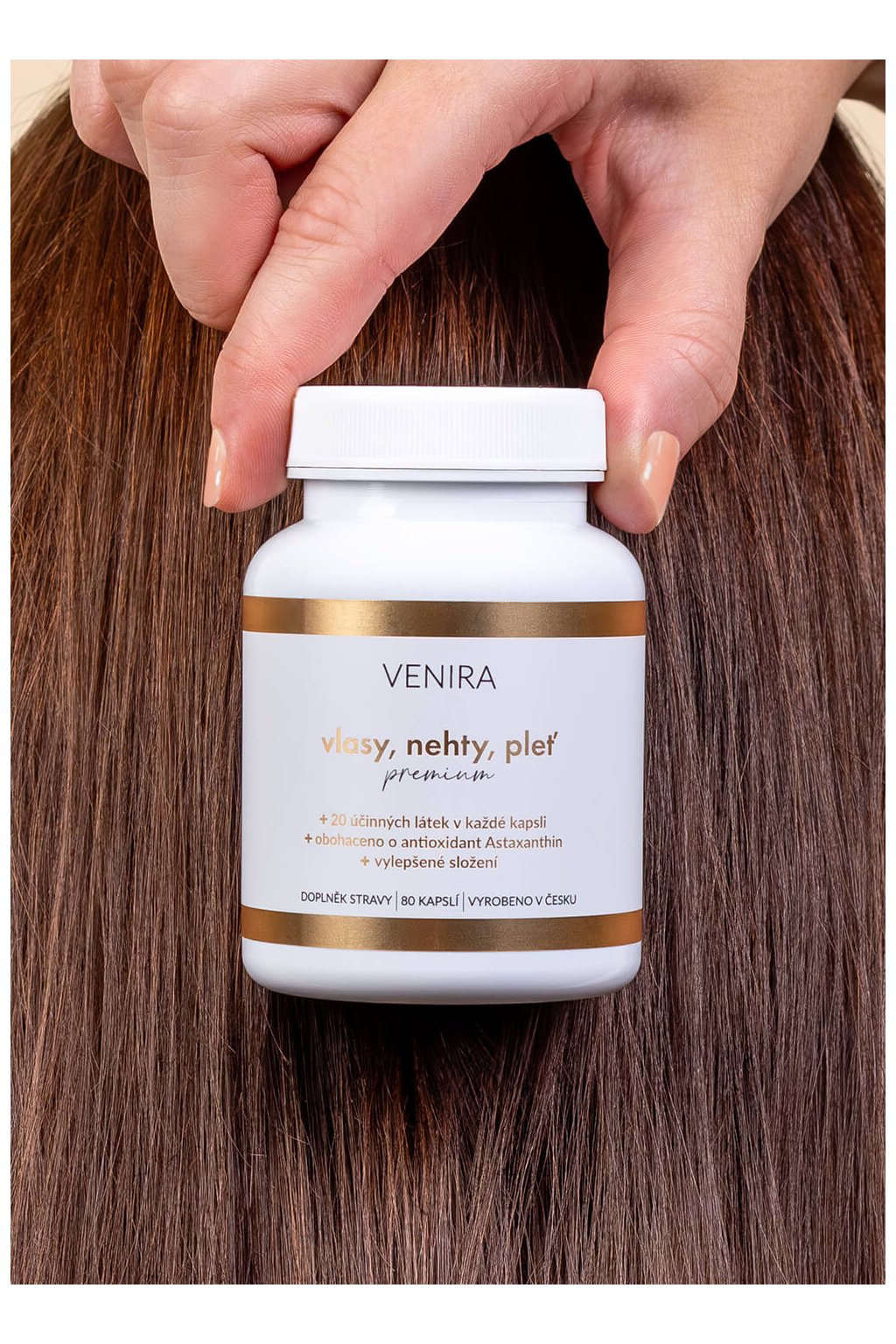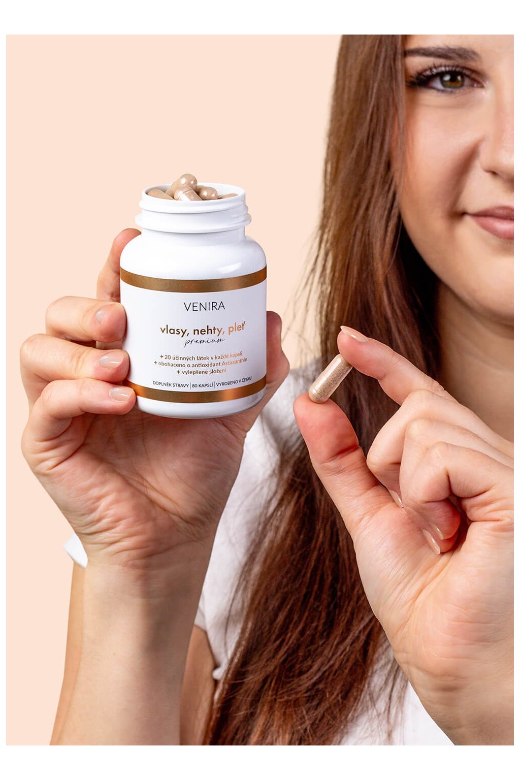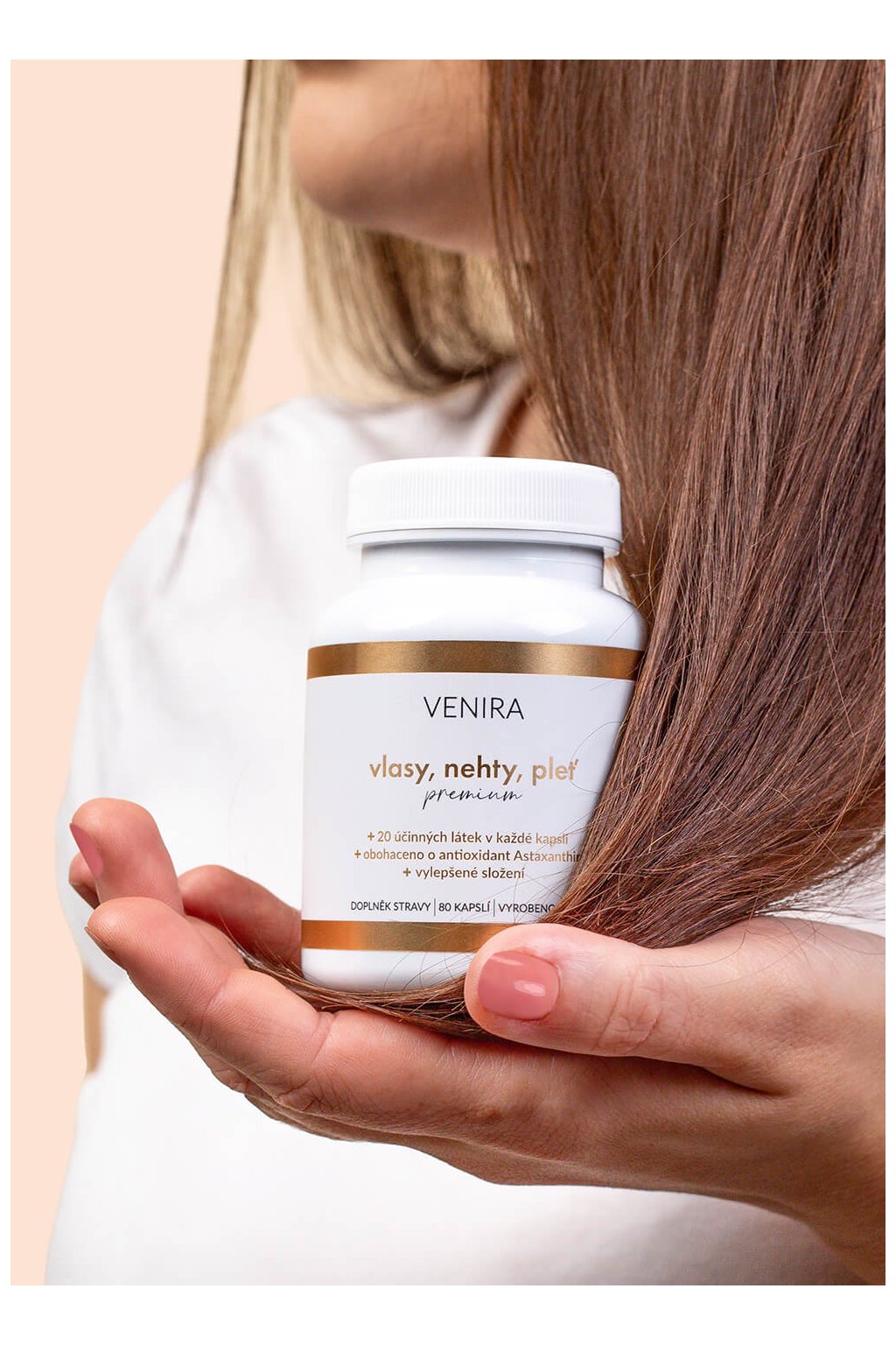 Biotín – vitamín B7 podporuje tvorbu keratínu, teda hlavného proteínu, ktorý dodáva vlasom pevnosť a pružnosť. Okrem toho pomáha udržať normálny stav vlasov a kože.