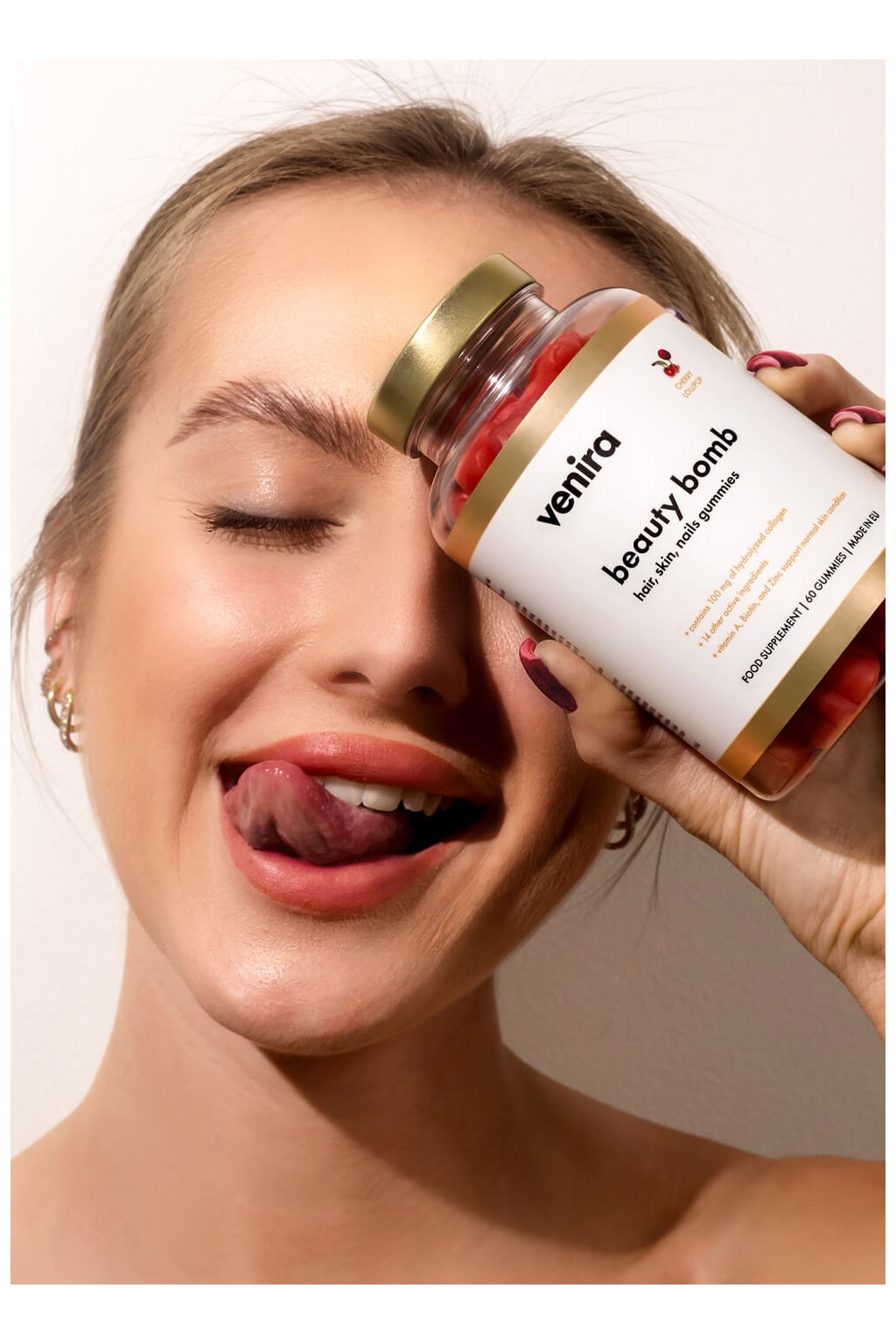 VENIRA beauty bomb - medvedíky na vlasy, nechty a pokožku čerešňové lízatko, 60 cukríkov