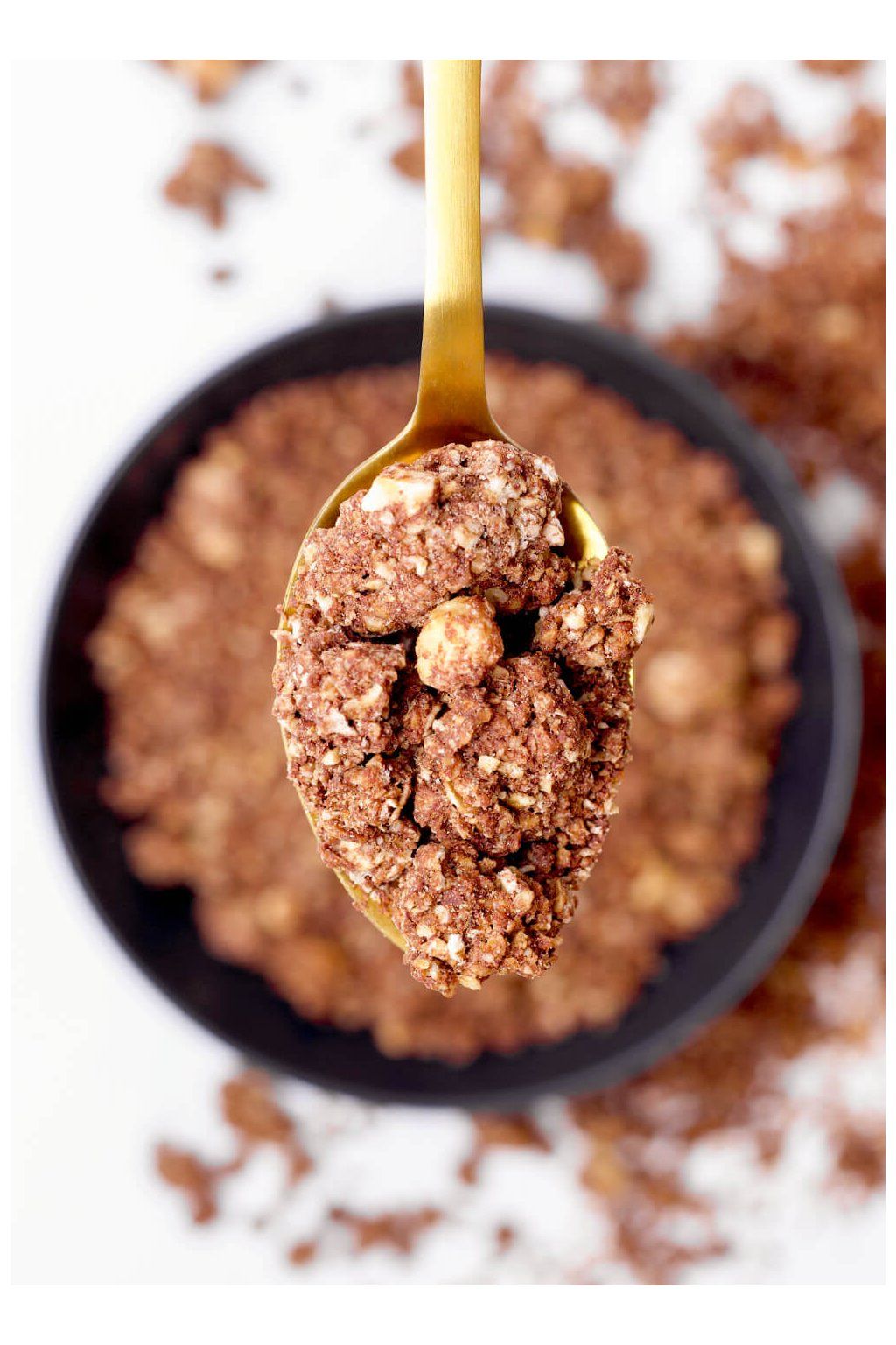 Zmes veľkých crunchy kúskov granoly s čokoládou a kokosom, ktorá ťa nabije chuťou aj energiou.