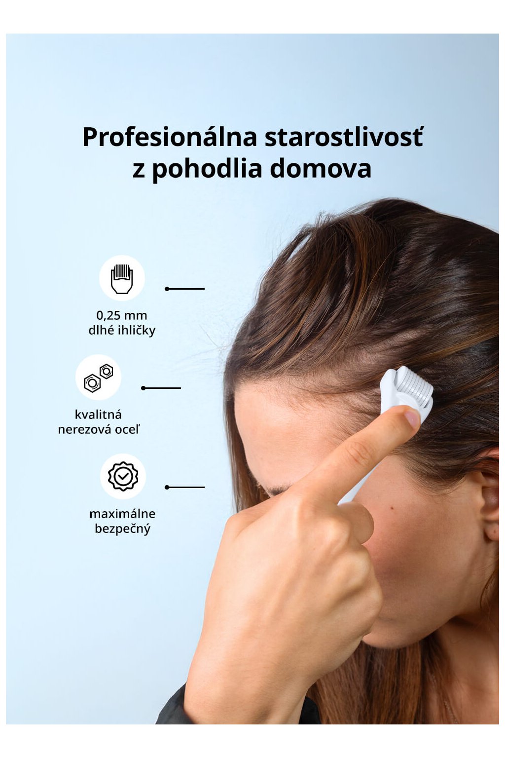 POZOR! Je dôležité si uvedomiť, že každý má inú pokožku a aj individuálnu reakciu na produkty starostlivosti o vlasy. Derma roller by sa preto nemal používať na kožu podráždenú či citlivú a na pokožku s kožnými ochoreniami. Pokiaľ trpíte vážnymi problémami, je vždy vhodné vyhľadať odborníka, ktorý vám poskytne konkrétne odporúčania práve pre váš typ kože.