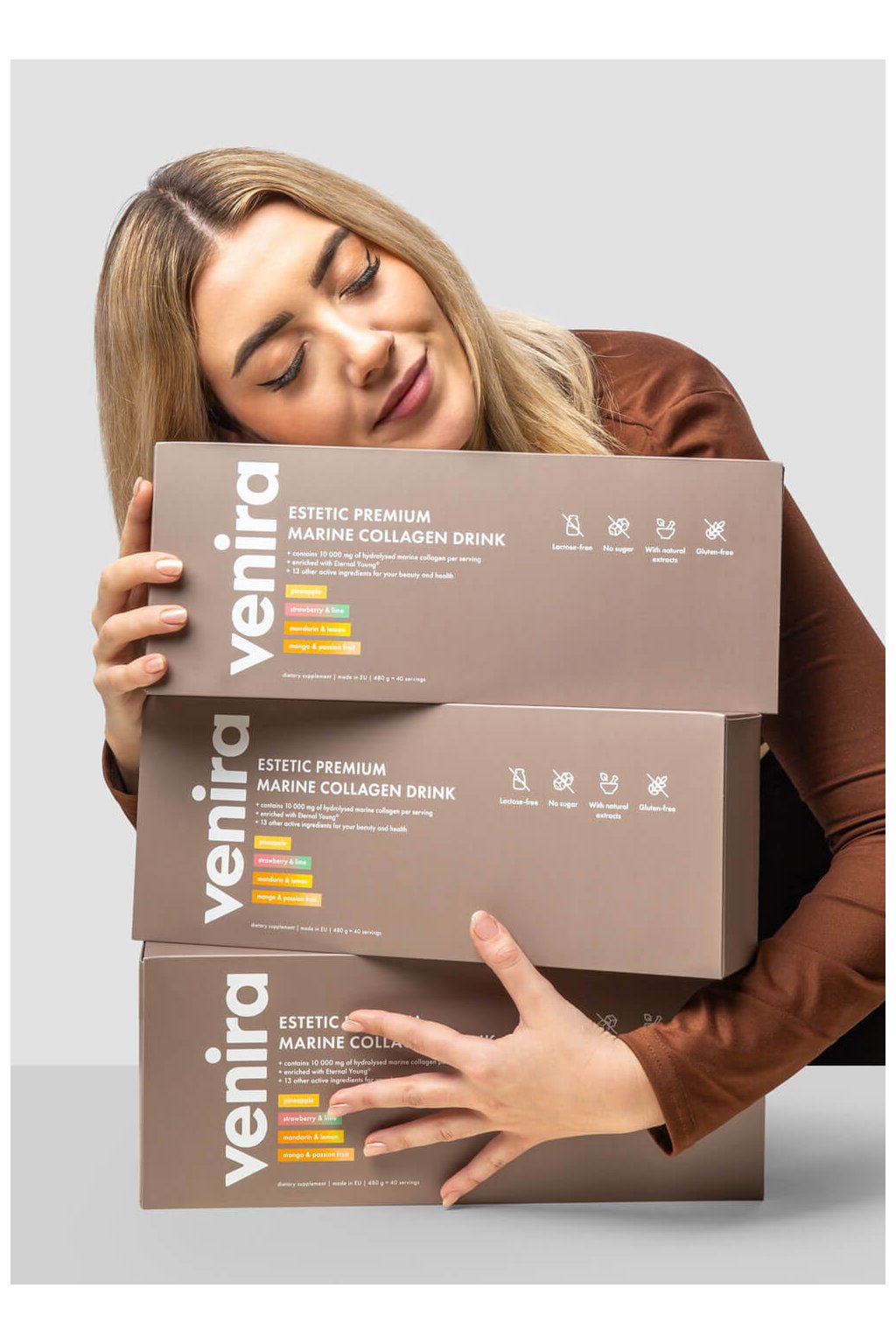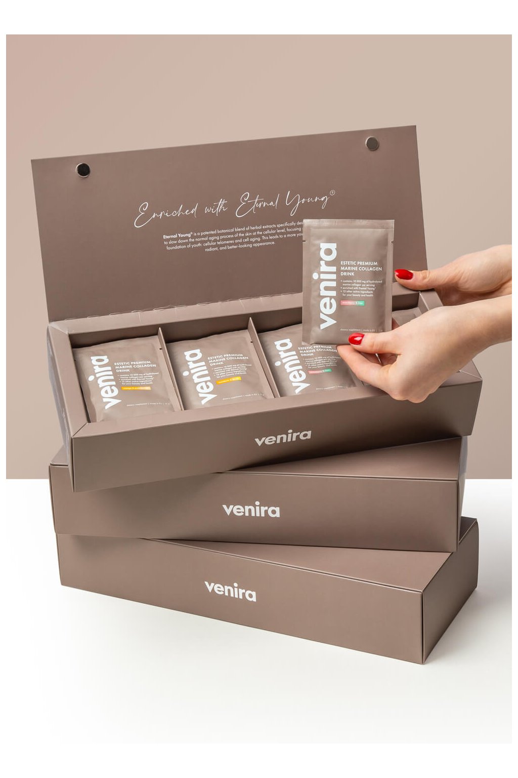 - obsahuje neuveriteľných 10 000 mg 100% bioaktívneho hydrolyzovaného morského kolagénu Naticol® a ďalších 13 starostlivo vybraných aktívnych látok (vrátane komplexu Eternal Young®, ktorý spomaľuje bunkové starnutie)