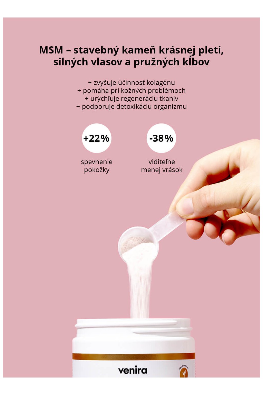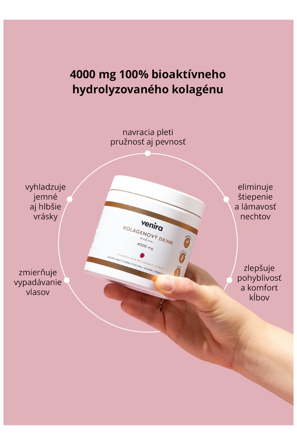 VENIRA kolagénový drink pre vlasy, nechty a pleť je vhodný ako pre ženy, tak aj pre mužov zhruba od 25 rokov, kedy v tele začína produkcia kolagénu prirodzene klesať – po prekročení 40 rokov je dokonca zastavená úplne.