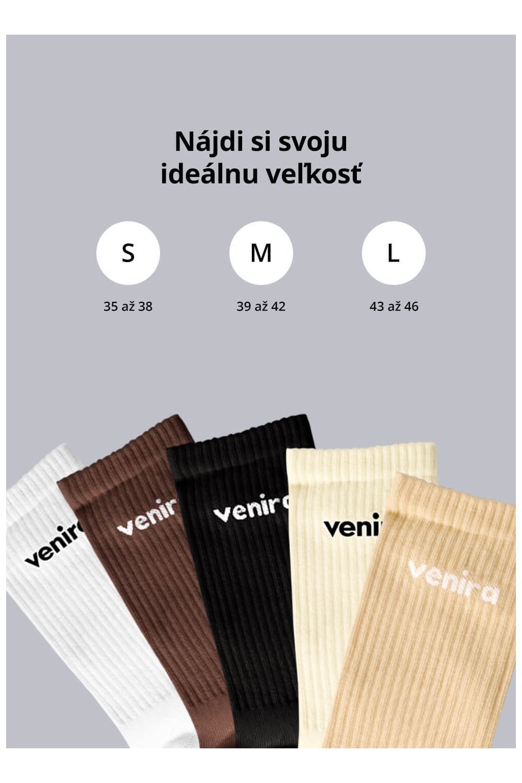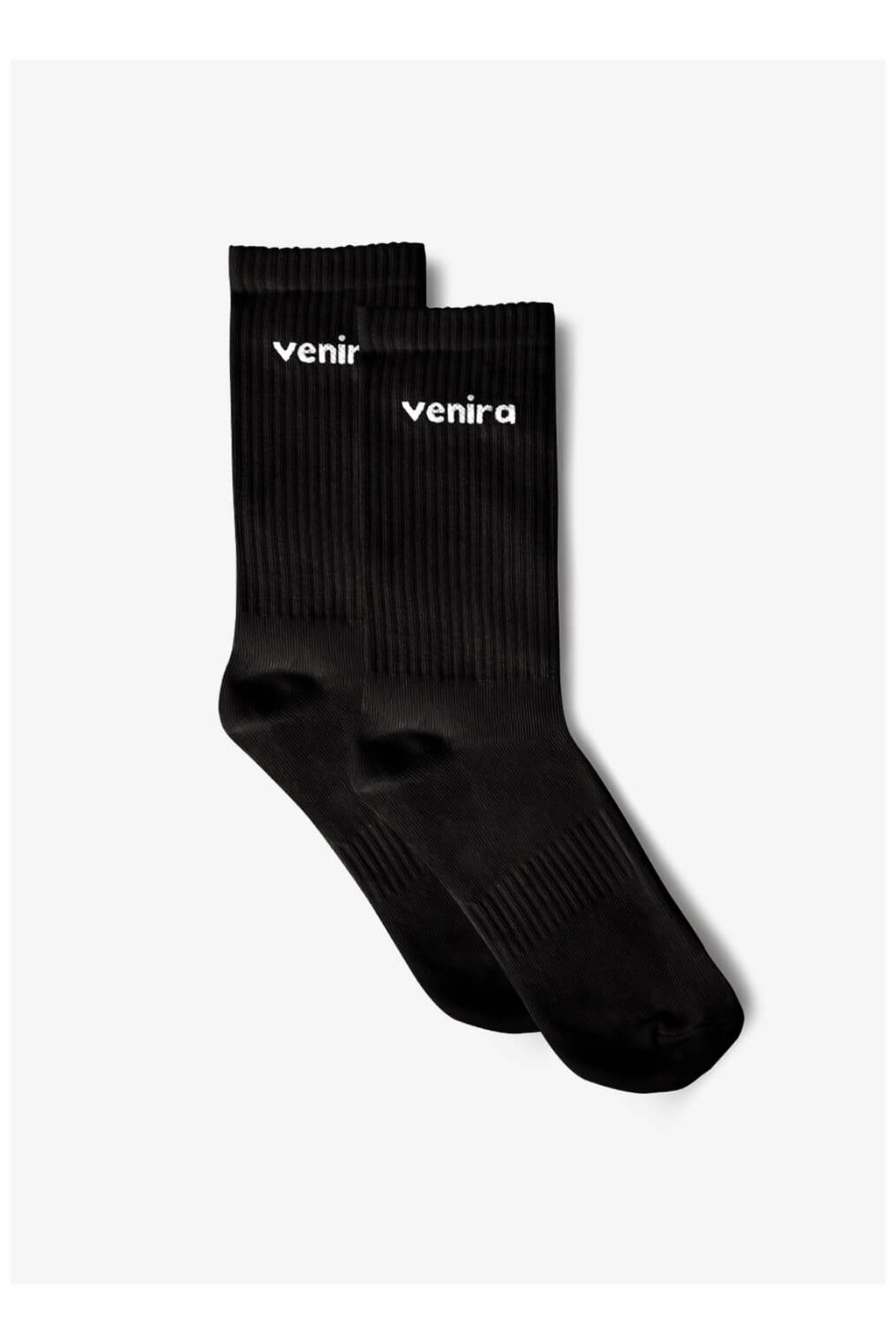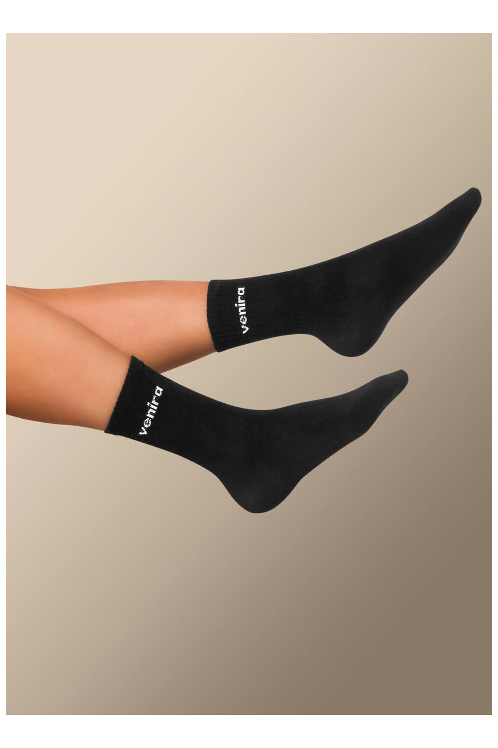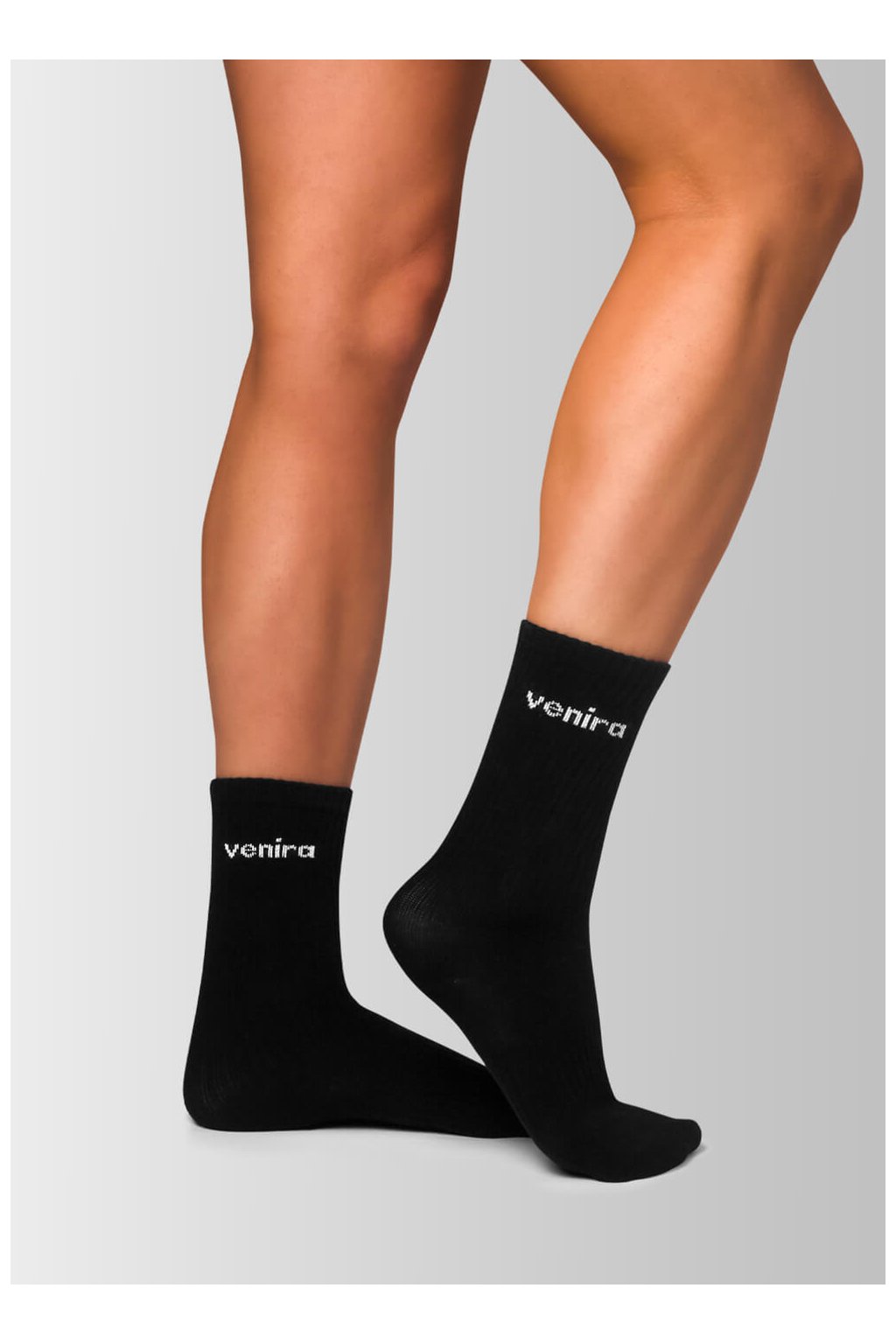 Horná časť ponožiek je rebrovaná, čo zaisťuje, že skvele drží na svojom mieste bez nepríjemného sťahovania alebo zarezávania. Celkový vzhľad podčiarkuje decentné a elegantné logo VENIRA, ktoré im dodáva šmrnc. Ponožky sú navyše vďaka trom dostupným veľkostiam navrhnuté tak, aby perfektne sedeli na každej nohe a zvládli nielen bežné nosenie, ale aj aktívne popoludnie vo fitku.