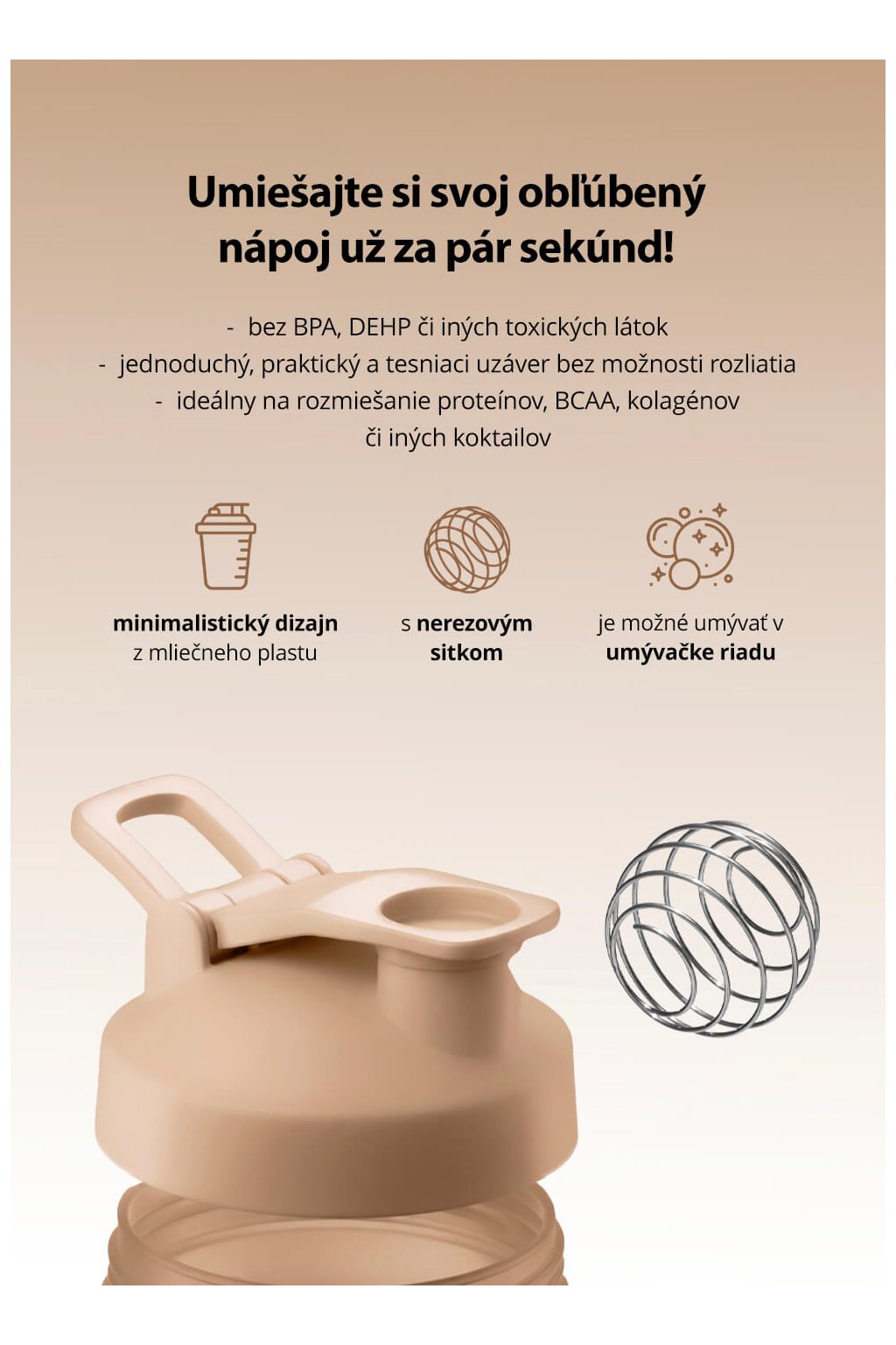 ## Bez BPA, DEHP alebo iných toxických látok, perfektne tesniaci uzáver, pohodlné uchopenie. ## ideálny na rozmiešanie proteínov, BCAA, kolagénov či iných koktailov...
