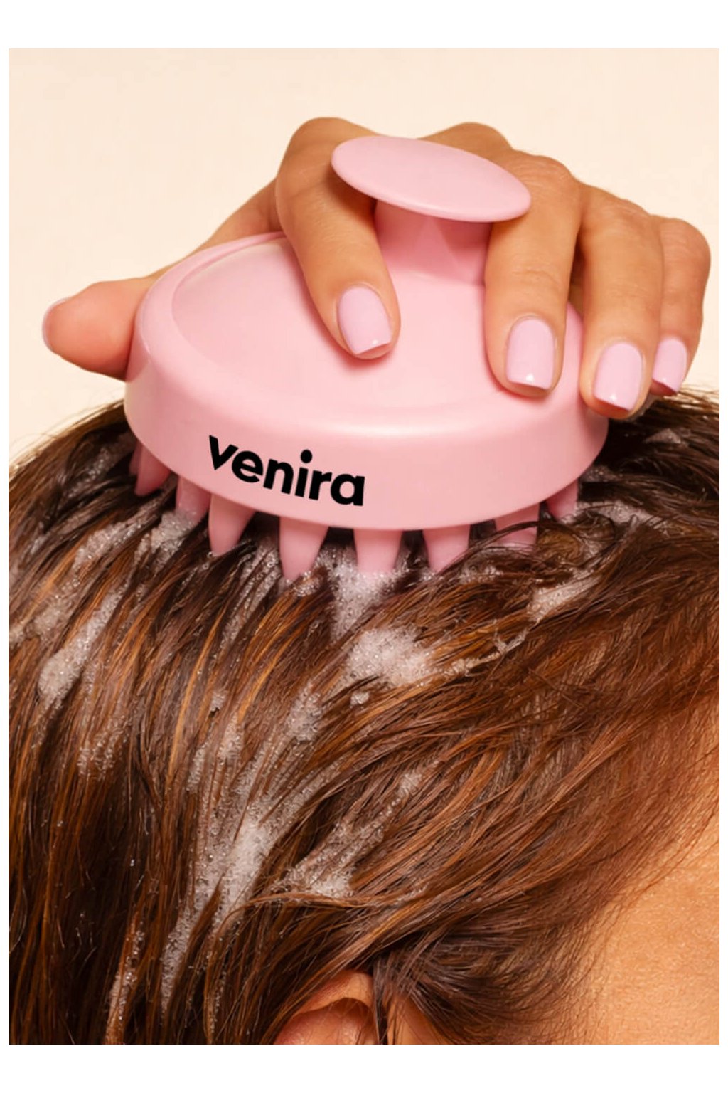 VENIRA stimulačná masážna kefa na pokožku hlavy ružová