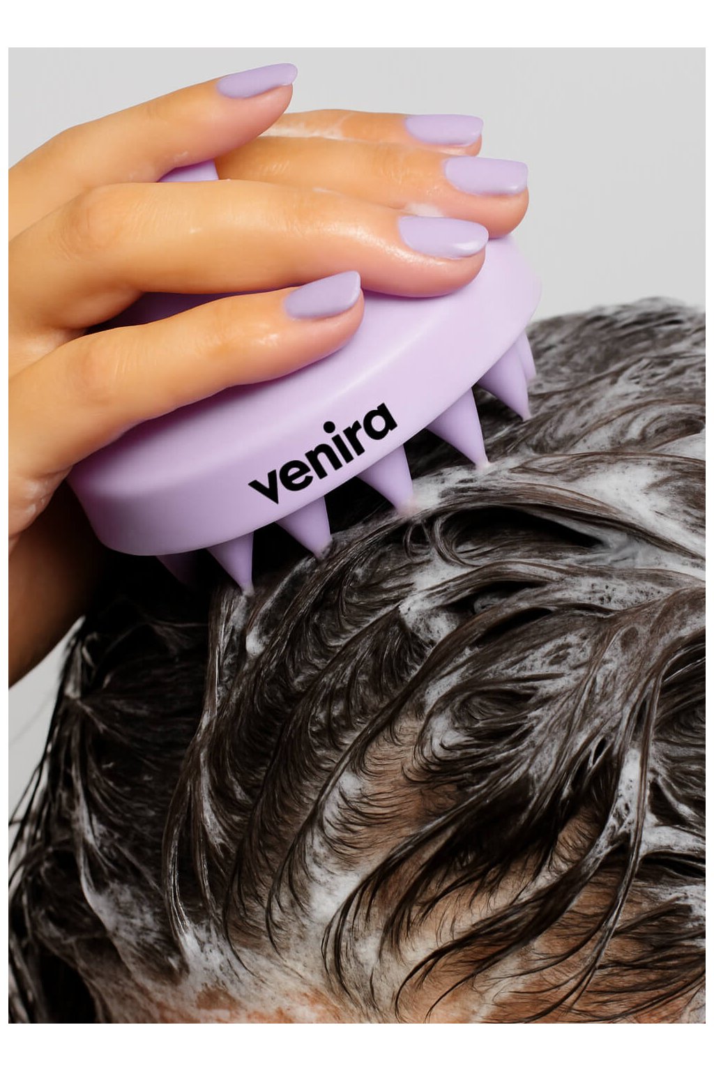 VENIRA stimulujúca masážna kefa pre vlasovú pokožku svetlo fialová