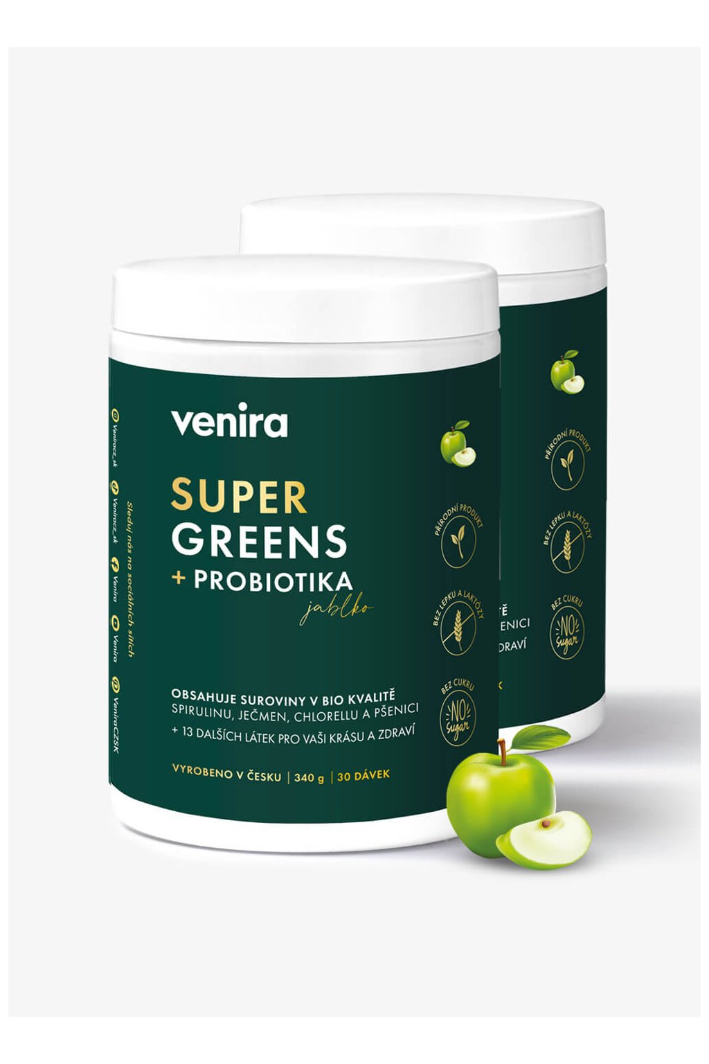 VENIRA super greens + probiotiká jablko, 340 g, 2 kusy